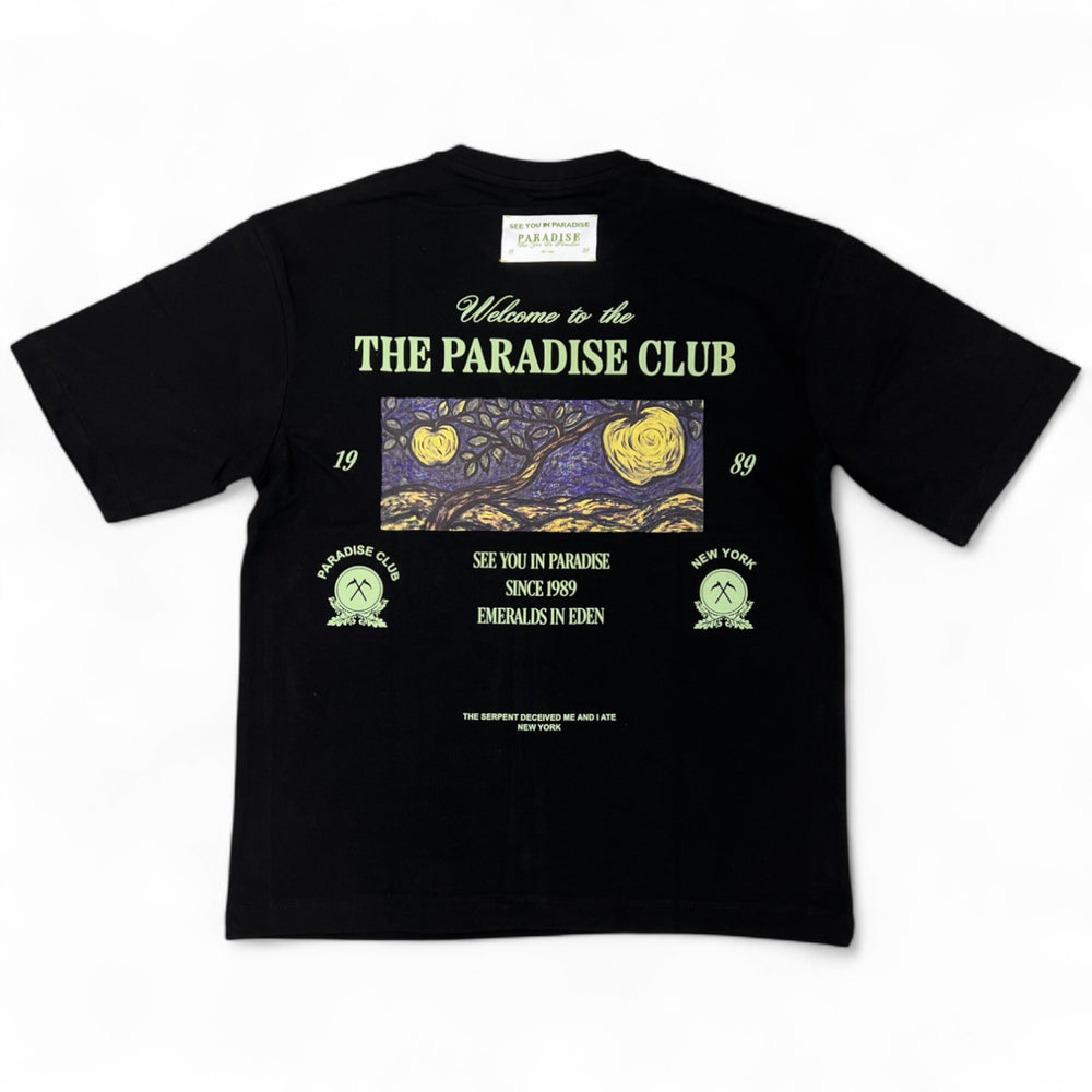 This cropped black tee boldly declares your paradise-bound intentions. Provocatively cut to showcase your midriff, it's the ultimate statement piece for those who dare to stand out. Pair with high-waisted bottoms for a look that commands attention and promises adventure. Not for the faint-hearted.